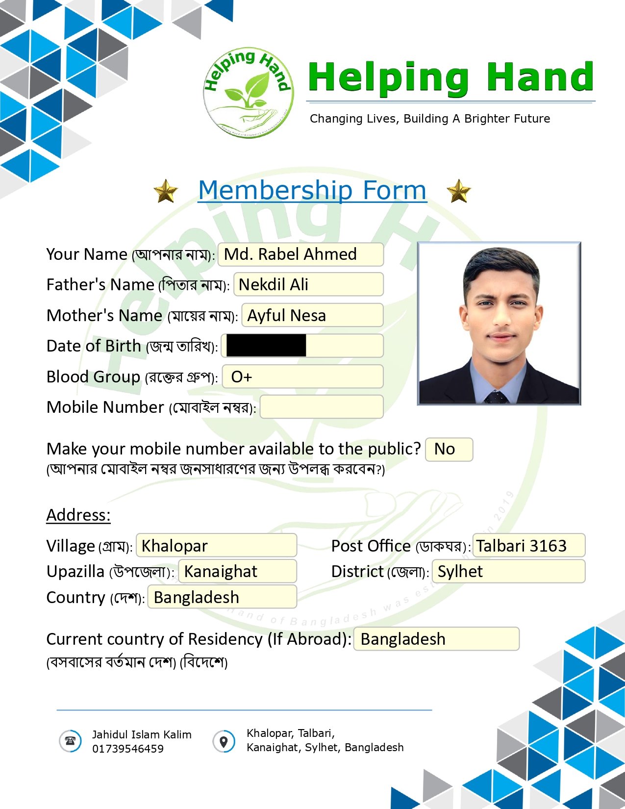Mother’s Name:  Ayful Nesa